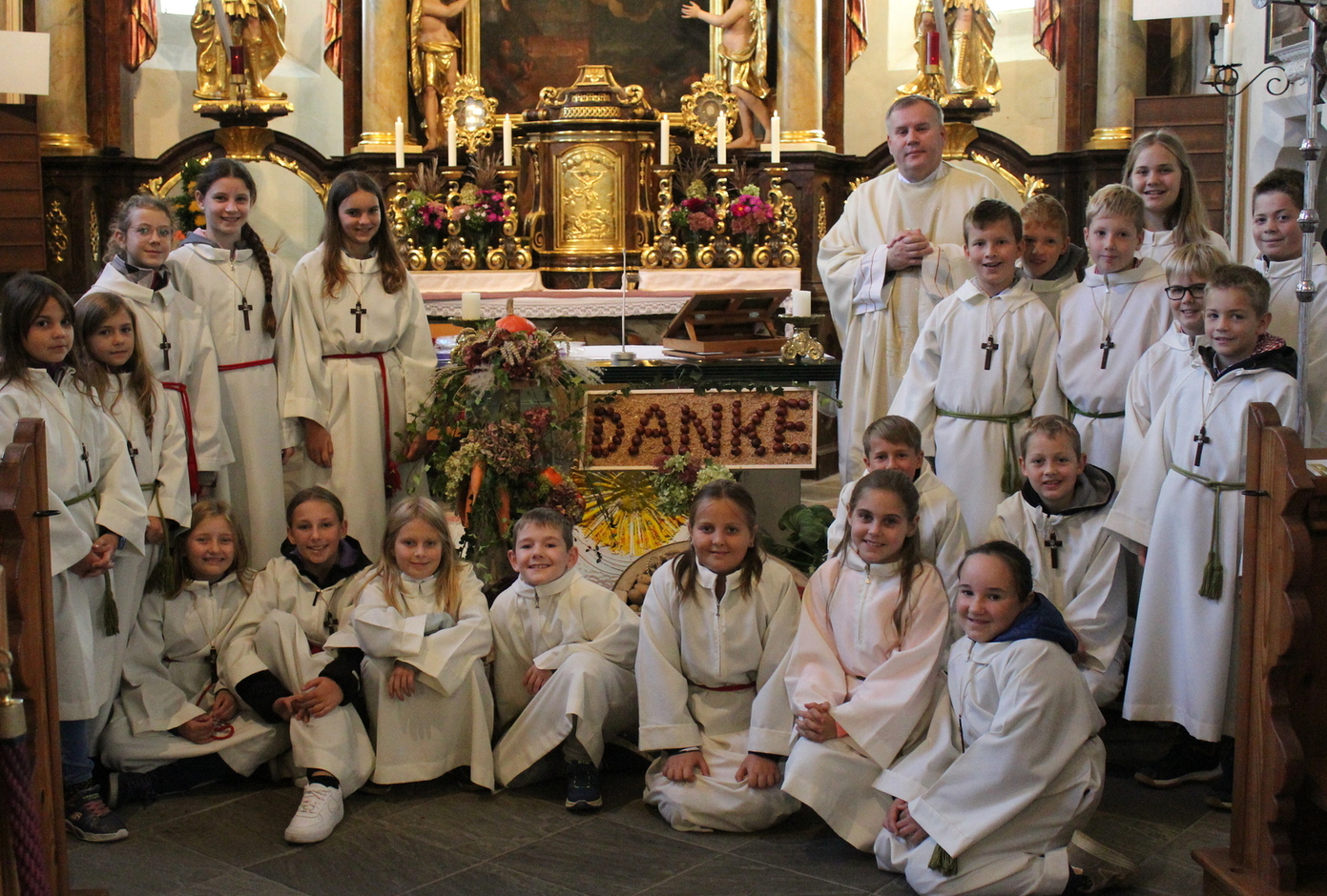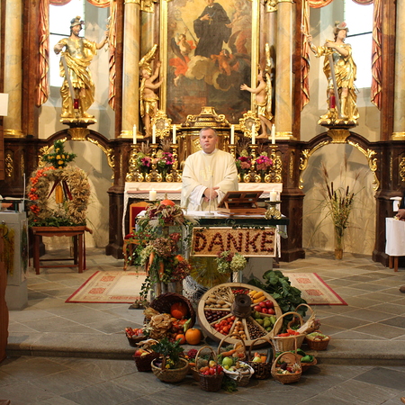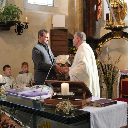 Der Gottesdienst wurde vom Jugendchor und vom Kirchenchor musikalisch gestaltet. Es war Zeit "Danke" zu sagen. Für die Gaben der Natur und auch für das Wirken von Pfarrer Martin Talnagi, der mit der Erntedankfeier seine letzte Hl. Messe in der Pfarre St. Leonhard am Walde feierte.