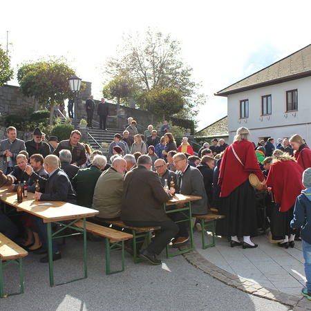 Im Anschluss lies man am Dorfplatz beim gemeinsamen Pfarrfest die Erntedankfeier ausklingen.