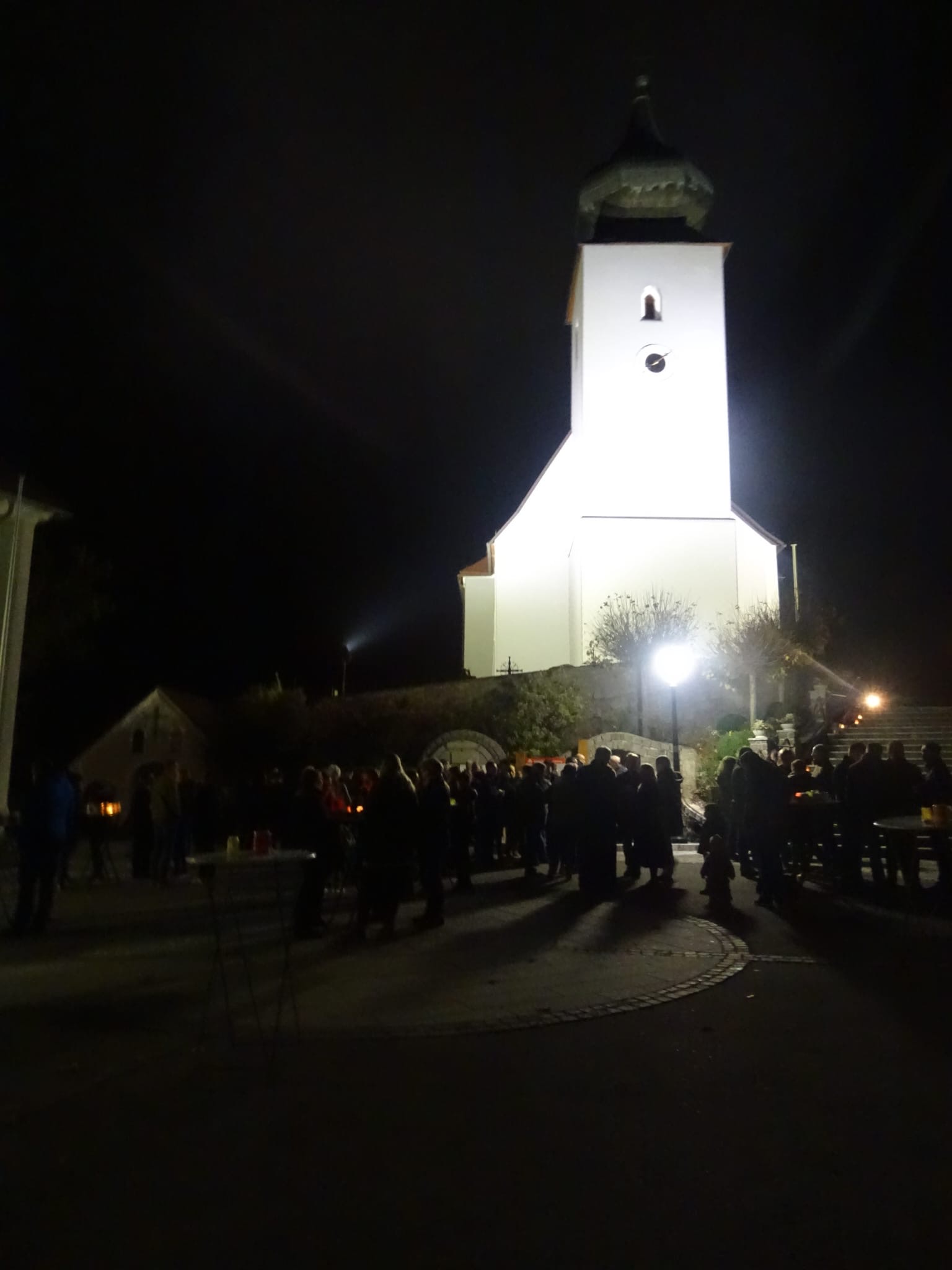 Am Vorabend von Allerheiligen, am 31.10.2024, versammelten sich zahlreiche Besucher zur "Nacht der 1000 Lichter" in der stimmungsvoll beleuchteten Pfarrkirche. Von den Mitgliedern des Pfarrgemeinderates, allen voran Andreas Krenn, wurden die Heiligen, die in der Kirche auf Bildern oder als Statuen dargestellt sind, vorgestellt und aus deren Leben erzählt. Es herrschte bei Texten, Liedern und in stillen Momenten eine wahrlich magische Stimmung in der Pfarrkirche. Anschließend lud die Katholische Jungschar zu Tee und Strietzel am Dorfplatz ein. So konnten alle gemeinsam den Abend gemütlich ausklingen lassen.