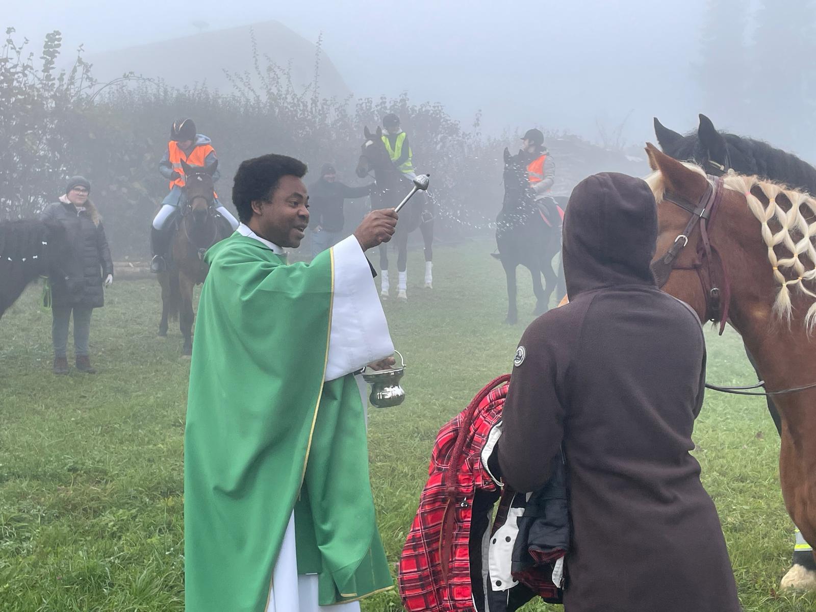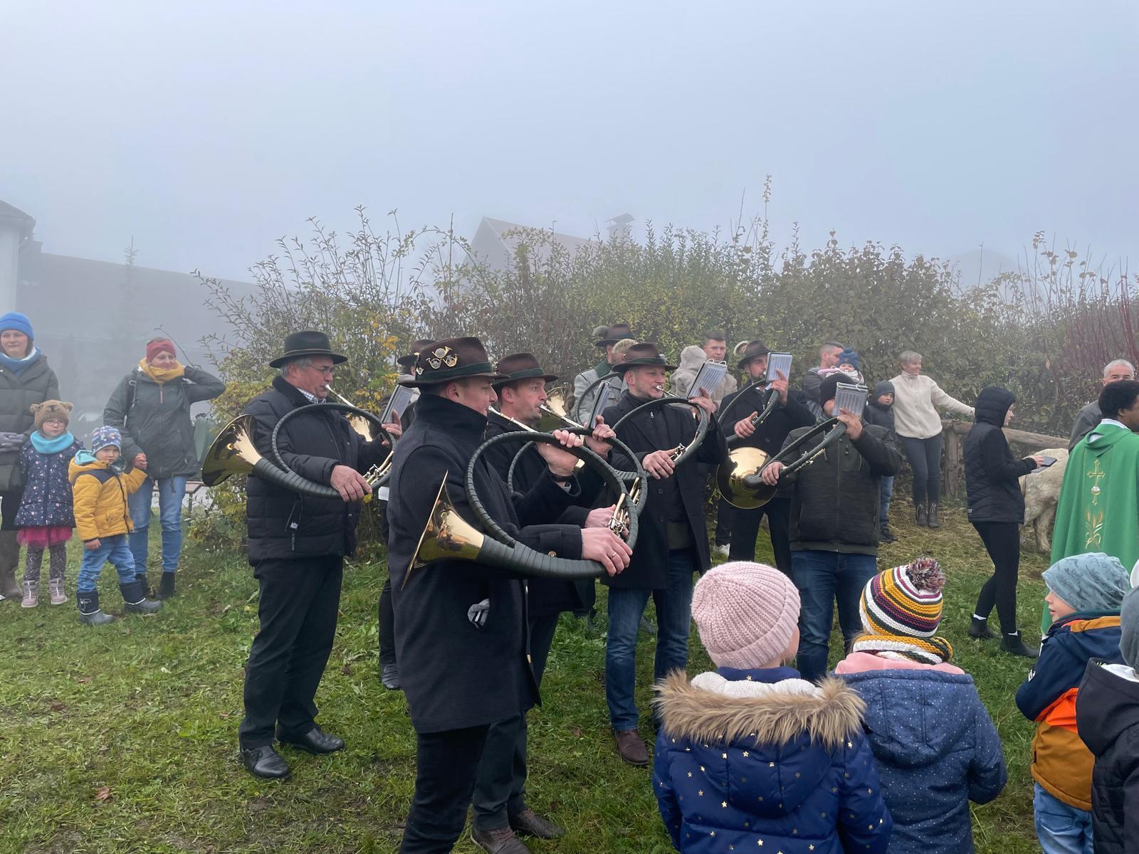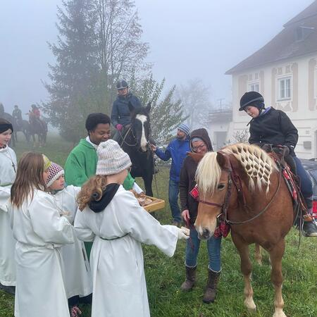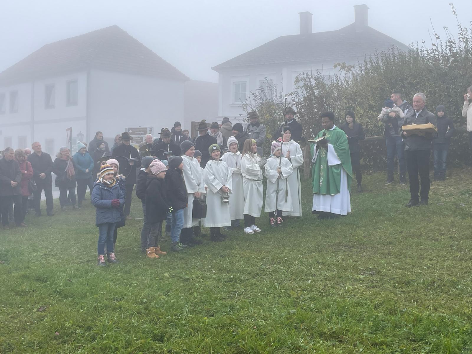 Am 10. November fand der traditionelle Leonhardikirtag statt. Nach der Hl. Messe ging es gemeinsam zur Pfarrwiese, wo sich bereits zahlreiche Pferde tummelten. Pater Samuel Igwe segnete die Tiere mit Weihrauch und Weihwasser, vom Pfarrgemeinderat gab es für jedes Tier ein Stück Brot. Die Leonharder Jagdhornbläser trotzten dem dichten Nebel und umrahmten die Feier mit ihren jagdlichen Klängen. Im Anschluss konnte man sich beim Teestand der Landjugend am Dorfplatz mit Glühmost, Tee, Broten und Mehlspeisen stärken.