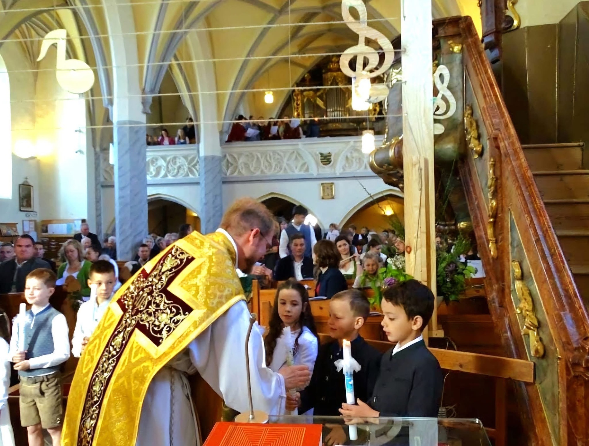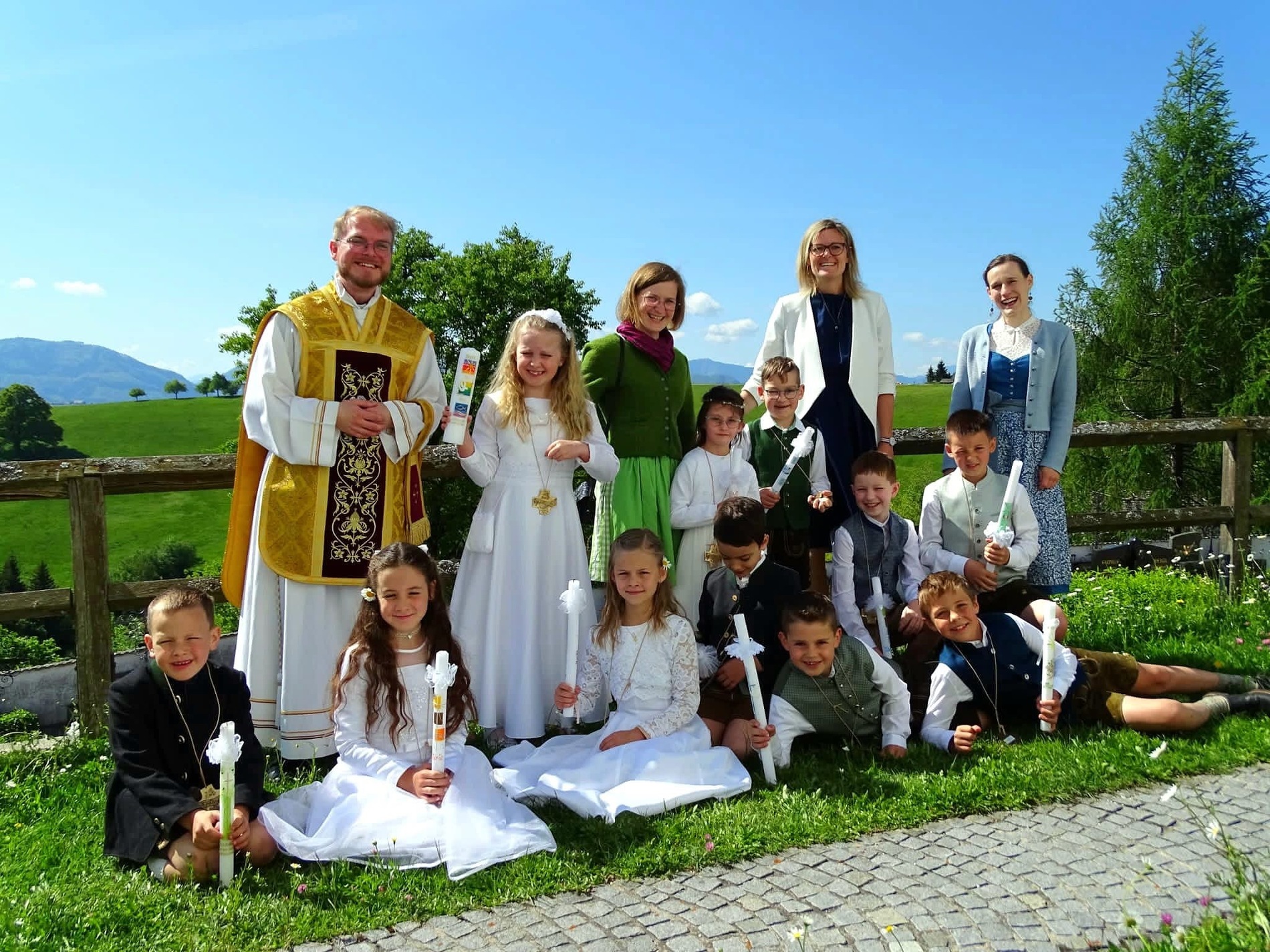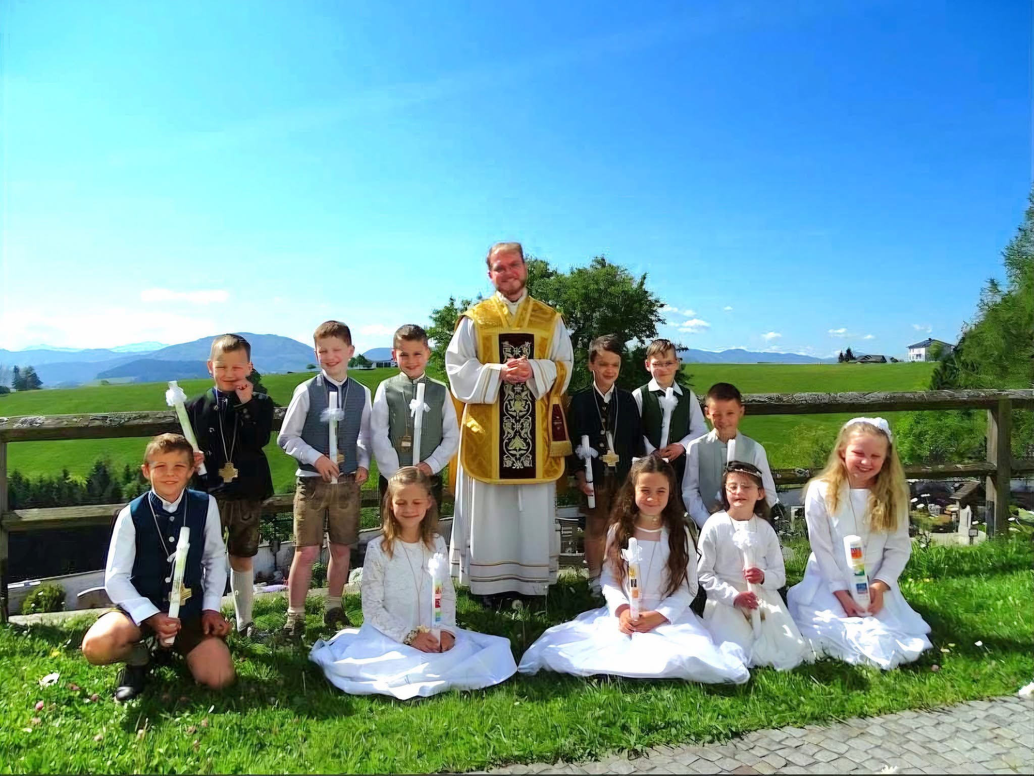 Unter dem Motto "Du bist ein Ton in Gottes Melodie" fand am 11. Mai 2025 bei strahlendem Sonnenschein die diesjährige Erstkommunion statt. Unter den Klängen der Trachtenmusikkaplle zog man gemeinsam in die feierlich geschmückte Pfarrkirche in. Die lebendige Messe, die durch die kreativen Ideen von Andreas Krenn bereichert wurde, zelebrierte Kaplan Luca. Der Jugendchor umrahmte den Gottesdienst musikalisch. Ein herzliches Dankeschön an alle, die zum Gelingen der Erstkommunion beigetragen haben!