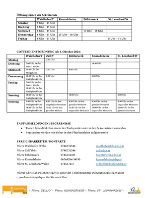 Gottesdienstordnung und Verlautbarungen
